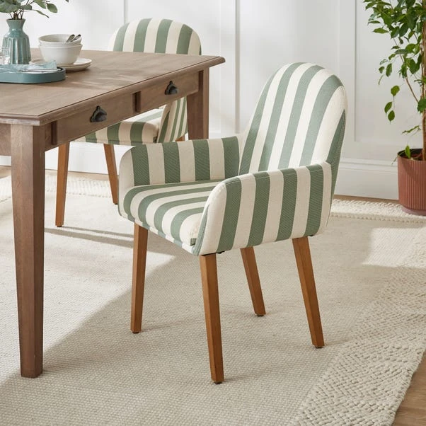 This chair’s stylish stripe pattern introduces visual interest and a contemporary flair to your decor. This chair not only stands out for its unique design but also for its comfort and durability, making it ideal for both everyday dining and special occasions. Its elegant structure, coupled with the bold stripe fabric, makes it a statement piece that can transform your dining space.