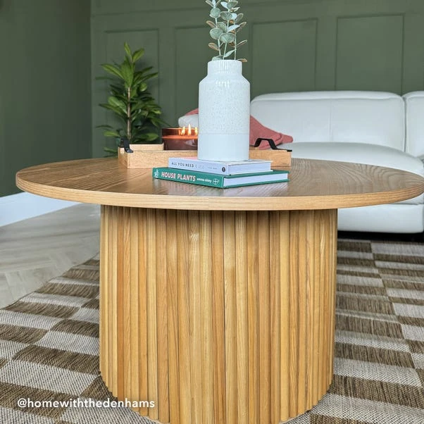 Elevate your living space with this elegant round coffee table. A true blend of artistry and utility, designed for those with an eye for refined aesthetics, it effortlessly becomes the centrepiece of your living room. Its gracefully curved silhouette brings a sense of fluidity and harmony to your space, and the generous surface area provides the perfect stage for books, decorative trays, or curated accents, making it a canvas for your personal expression. Transform your living area with a piece that balances beauty and practicality, this coffee table is more than furniture – it’s a statement.