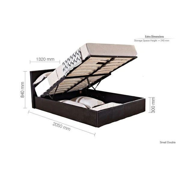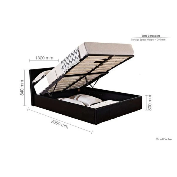 - Easy gas lift opening mechanisms that open from the bottom of the bed to reveal ample under bed storage.