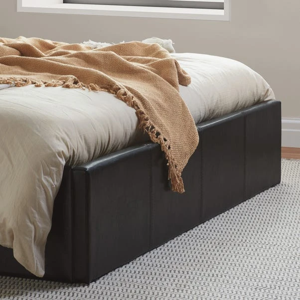 With the Berlin Faux Leather Ottoman Bedstead you can sleep soundly in the knowledge that your bedroom is looking both chic and that you have ample space to store your bedroom essentials. The intelligent design of this faux leather ottoman bed includes an easy gas lift operation revealing a storage compartment spanning the entire area beneath the mattress. The high headboard, faux leather finish and modern angular look of this bed frame will ensure a smart look in any bedroom.