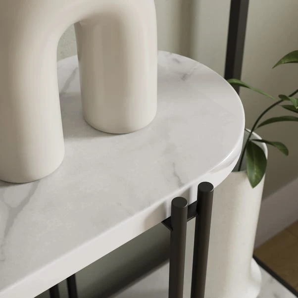 This tall shelving unit combines high functionality with modern design elements to meet your storage needs while adding a touch of sophistication to any room. Crafted with sturdy metal frames and featuring large shelves, this piece seamlessly blends durability with elegance. Its tall design offers ample storage space, perfect for displaying books, decorative items, or organising essentials in style.