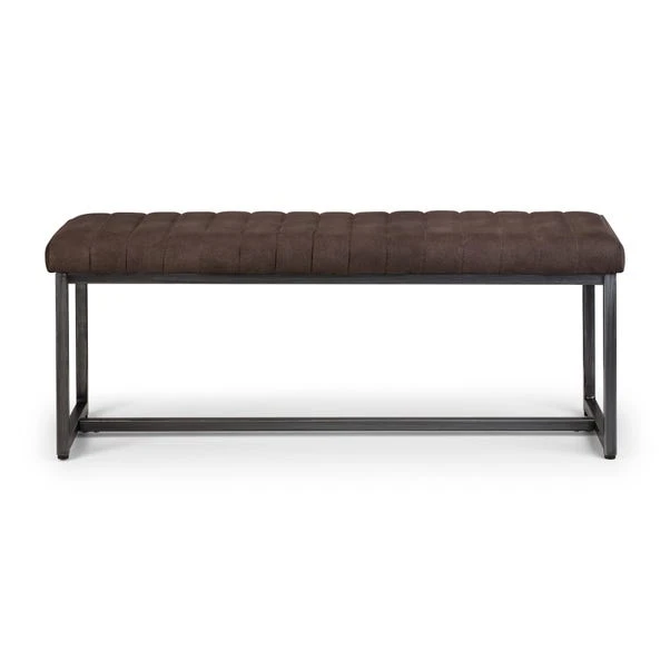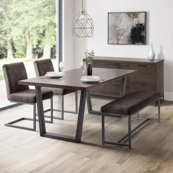 Crafted from solid oak with a vintage finish, this bench highlights the stunning natural wood grain, adding warmth and character to your room. The industrial trapeze-style metal legs provide a unique and sturdy foundation, making this bench a stylish and functional seating option. Spacious enough to comfortably seat two people, the Brooklyn Bench is ideal for both casual and formal dining settings.
