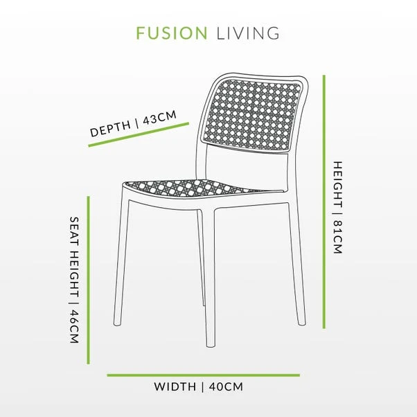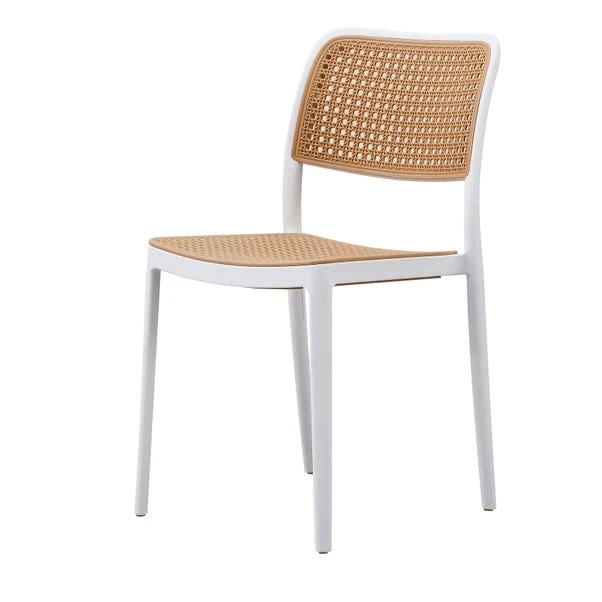 A stylish and contemporary addition to your dining area, this plastic rattan cafe dining chair combines lightweight durability with a sleek retro look. The chair’s colour, paired with beautiful rattan detailing, enhances any interior, making it perfect for various decor styles. It provides both comfort and support, ensuring a pleasant seating experience. Easy to clean and stackable, this chair is practical for both indoor and outdoor use.
