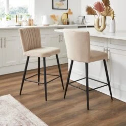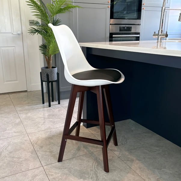 Part of a collection inspired by contemporary designs, this bar stool is perfect for long, leisurely meals or time spent reading at a kitchen counter. The shaped seat and back, combined with a soft seat pad, ensure added comfort, while the four squared, natural beech wood legs provide sturdy support. The seat pad is easy to wipe clean, making this bar stool a practical choice for any contemporary home.