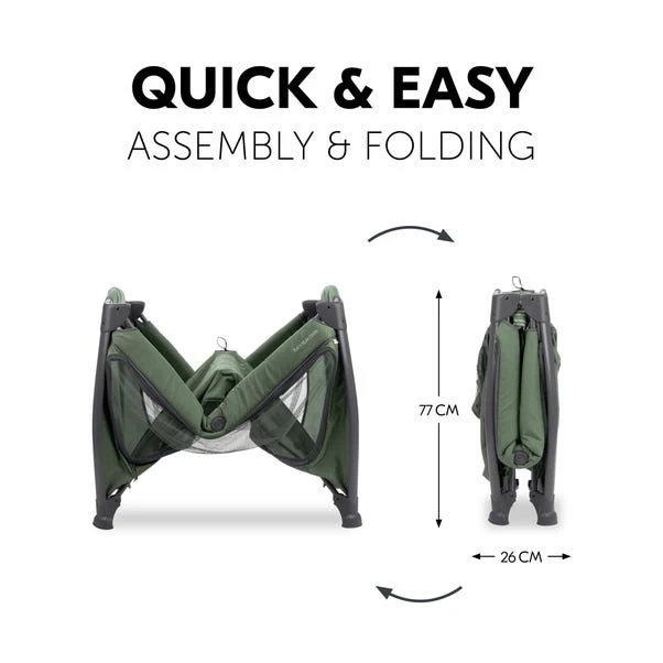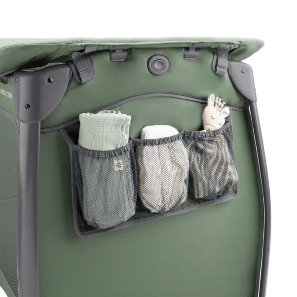 The Play N Relax Center offers a comfortable and secure space for both newborns and toddlers up to 15 kg, making it ideal for holidays and at home. With a raised newborn module, it’s easy on your back, and the changing mat adds convenience. As your child grows, they can sleep on the lower level. The travel cot is simple to assemble and fold, and the roller wheels allow for easy movement between rooms. Large mesh panels and a ventilated base ensure a breathable sleeping environment, while the access hatch lets your little one crawl in and out independently. Complete with a transport bag for space-saving storage.