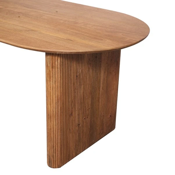 This table, supported by sturdy CNC-designed wooden legs, comfortably seats up to 8 people. The modern and refined aesthetic is enhanced by the Boucle Stone Chairs, which provide both style and comfort.