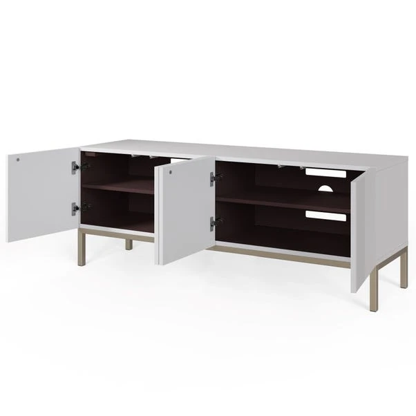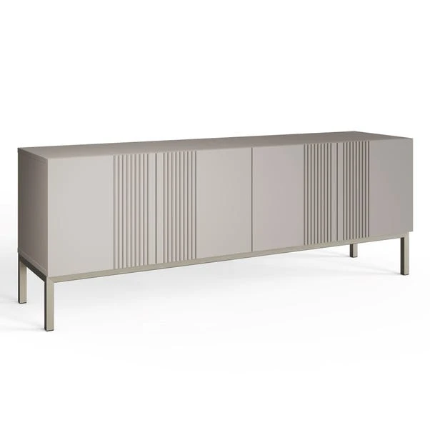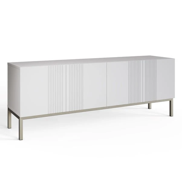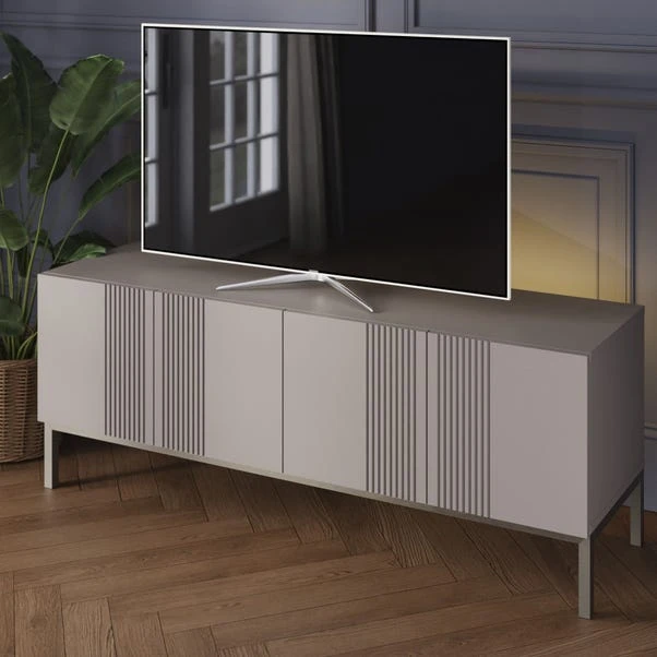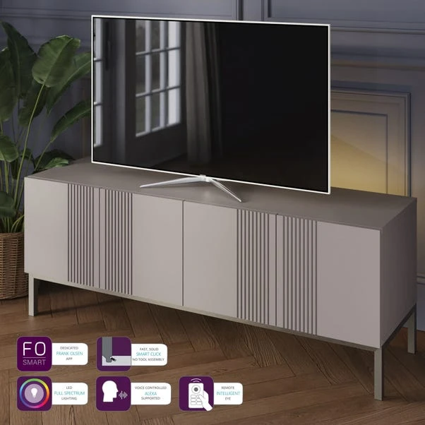 Upgrade your entertainment space with our Iona Large TV Unit. This four-door TV cabinet features a subtle fluted design and a painted finish, making it the perfect statement piece for your living room. The adjustable shelves and push to open doors make it both practical and convenient. With integrated discreet SMART features, app and smart speaker operated back lighting, and an intelligent eye remote control, this TV unit is perfect for your modern home.