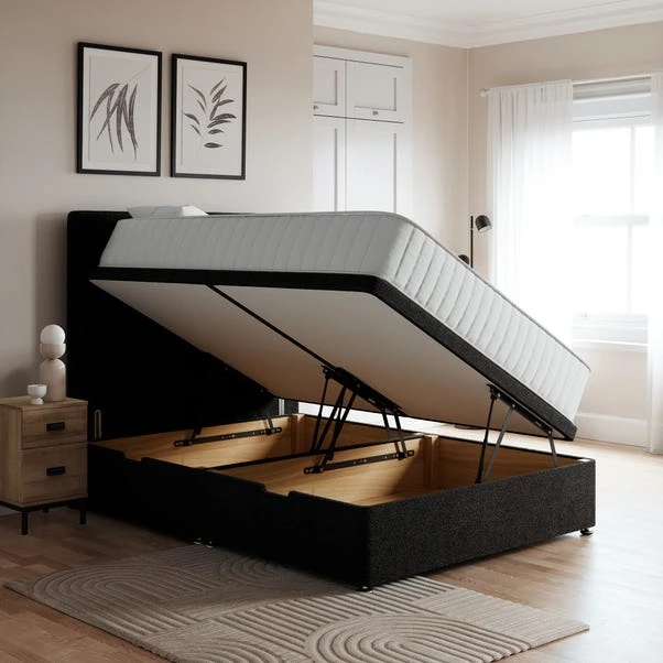 Constructed from high quality timber, this ottoman divan bed base provides excellent support for all types of mattresses. Upholstered in a range of high quality fabric colours, you can be sure you can find one to coordinate with your bedroom. This divan base is the ultimate style and storage solution for any bedroom.