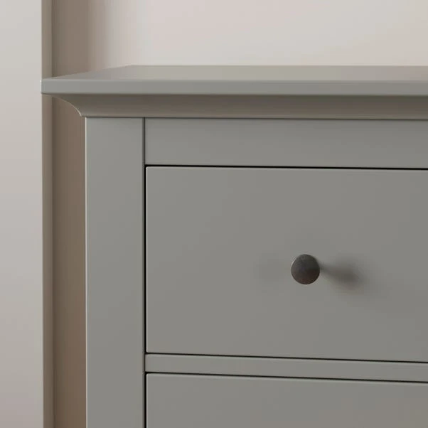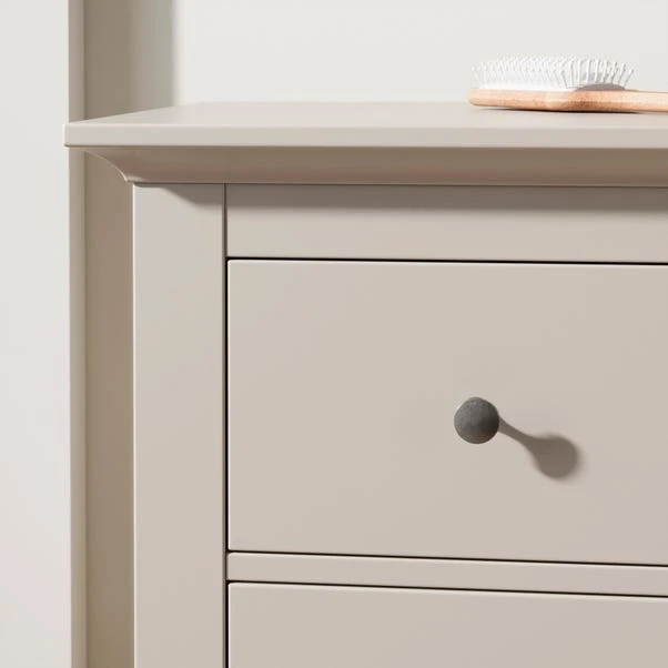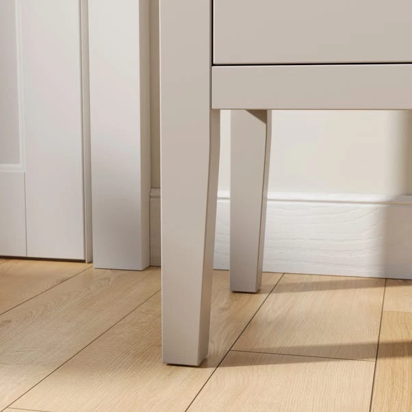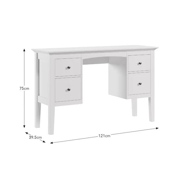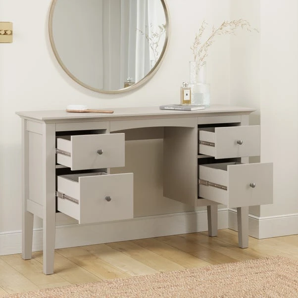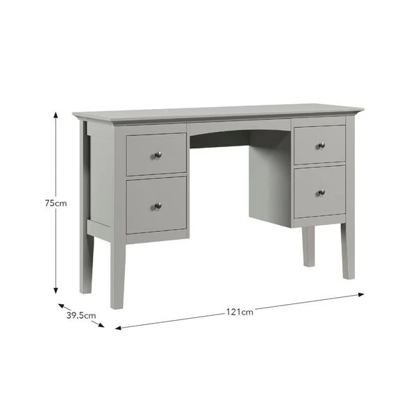 Designed with storage space, this dressing desk features four large storage drawers with smooth metal runners and finished with brushed grey metal handles.