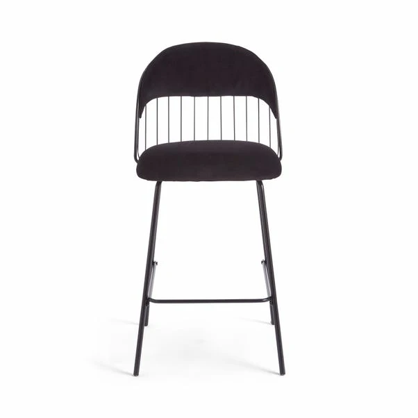 This stunning bar stool combines comfort and style, making it the perfect addition to any contemporary interior. The foam-filled cushions provide exceptional seating comfort, allowing you to relax and enjoy your favourite beverages or meals in utmost comfort. The soft upholstered black velvet adds a touch of elegance and sophistication to your space, creating a chic and inviting atmosphere. The curved back seat not only offers excellent lumbar support but also adds a modern flair to the overall design. Supported by sturdy metal legs, this bar stool ensures stability and durability, making it a long-lasting investment.