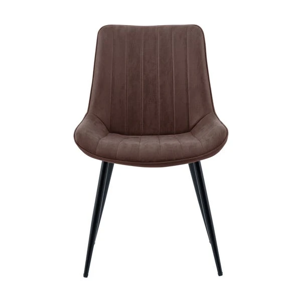 The Zion Dining Chair features a modern design with a retro industrial finish, this stylish pair of dining chairs require minimal assembly and are built on sturdy black metal legs for a striking look. Upholstered and complete with gorgeous ribbed stitch detailing. These dining chairs feature foam padded seats for maximum comfort, perfect for any dining table space.