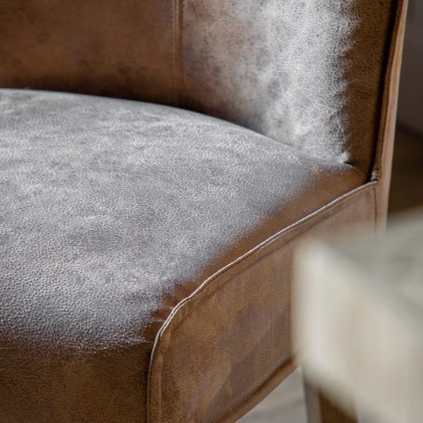 Do you have a modern space? Or even a more vintage style home? These chairs are designed to suit a range of home interiors, including yours! They have been upholstered with a tan brown leather and finished with gently curving legs.
