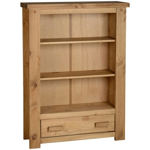The Tortilla 1 Drawer Bookcase will make for a stylish yet practical rustic addition to your living space. Boasting a wonderful waxed pine finish to give off that rustic distressed aura, the Tortilla will sit well in a variety of living room settings. With three shelves and a drawer, this piece has ample storage space for your belongings.