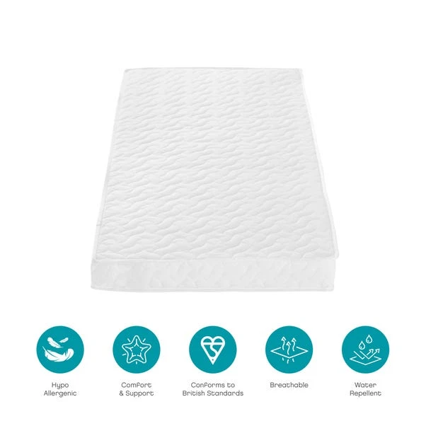 Cot Bed: D 10cm x W 70cm x L 140cm
