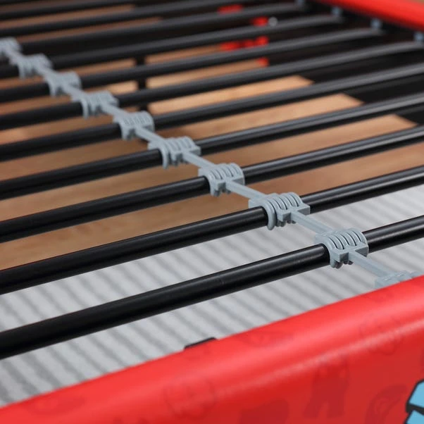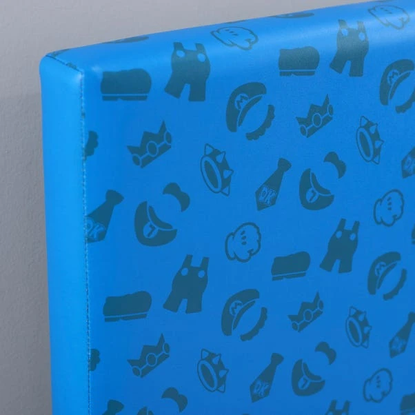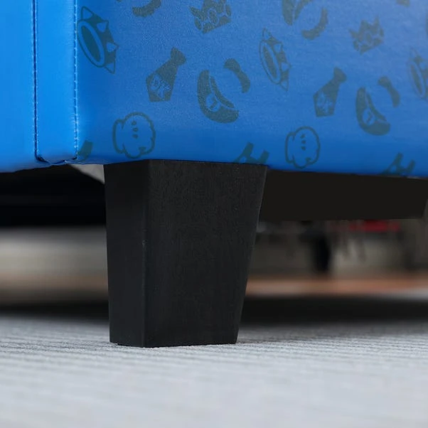 This single bed frame transforms bedtime into a journey through the Mushroom Kingdom, showcasing the beloved gaming duo – Mario & Luigi – on its vibrant blue printed finish. Perfectly designed for junior gamers, this standard UK single bed frame (3ft/90x190cm) features a plush upholstered faux leather headboard that promises comfort and smiles every time you tuck in. Partnered with Nintendo® of Europe, this Super Mario Brosâ„¢ licensed gaming bed meets the highest standards of design and durability, ensuring Nintendo enthusiasts game in ultimate comfort and style. Engineered for younger players, this bed’s low-to-floor build and rounded edges prioritise safety. With soft, durable foam-padded upholstery and reinforced metal bed slats, this gaming bed guarantees unrivalled comfort for gaming and relaxing. Delivered flat-packed in a single box with straightforward instructions, assembling the Super Marioâ„¢ Gaming Bed is a breeze, offering a quick setup for countless dreamy gaming adventures.